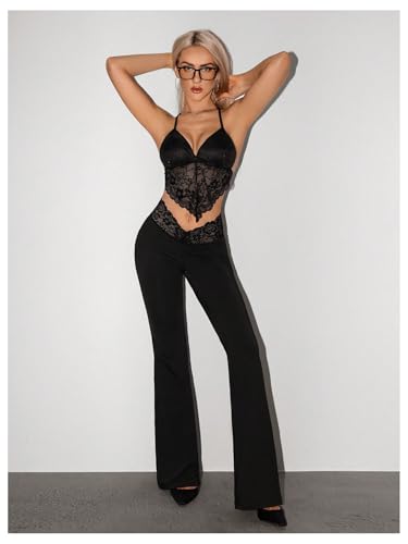 Milumia Women's Low Waist Lace Trim Flare Pants Leggings Rave Going Out Bell Bottoms 1
