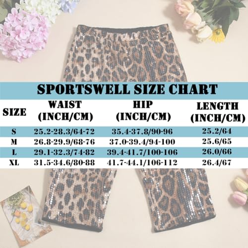 Women's Cheetah Print Pants Sequin High Elastic Waist Y2K Knee Length Capri Leggings 6