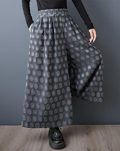 More information about ellazhu Women's Pants Solid Polk Dot Two Side Pockets Wide Leg Elastic Waist Fashion Casual Plus Size Maxi Loose GZ593