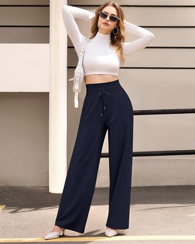 CLOZOZ Wide Leg Casual Pants for Women Trouser Pants Elastic Palazzo Pants with Adjustable Drawstring 6