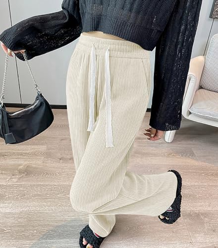 • 【FEATURE】The wide leg corduroy pants for women features elastic waist with drawstring, wide-leg and solid color style is trendy and never go out of style. Women's loose fit wide leg corduroy pants with draswtring, allowing you to move freely without any restrictions. Fashionable and warm, is an essential piece of women's wardrobe.