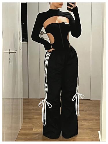 • Feature: Side striped, bow tie, elastic waist, high waist, wide leg pants, loose fit, womens pants, fashionable