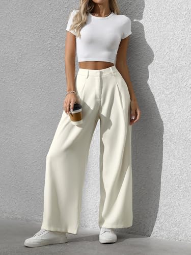 Women's Wide Leg High Waist Loose Palazzo Office Pants with Pockets Work Pants for Women Business Casual 6