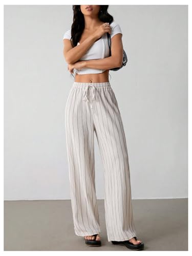 HOT ! Women's Striped Wide Leg Pants Drawstring Waist Vacation Baggy Lounge Pants Trousers