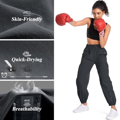 • 【Material】 Parachute pants for women are made of premium fabric, 90% Nylon wearable, skin-friendly, soft, comfortable and quick dry for all-day wear.10% Spandex stretchy fabric offers a looser fit for ultimate comfort and freedom of movement, perfect for active lifestyles. Ideal for Spring, Summer, and Autumn.