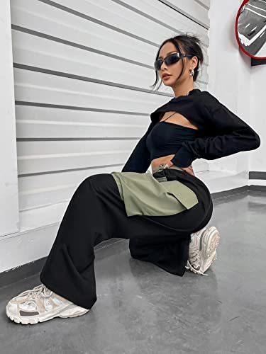 WDIRARA Women's Colorblock Drop Waist Button Streetwear Cargo Pants with Pockets 1