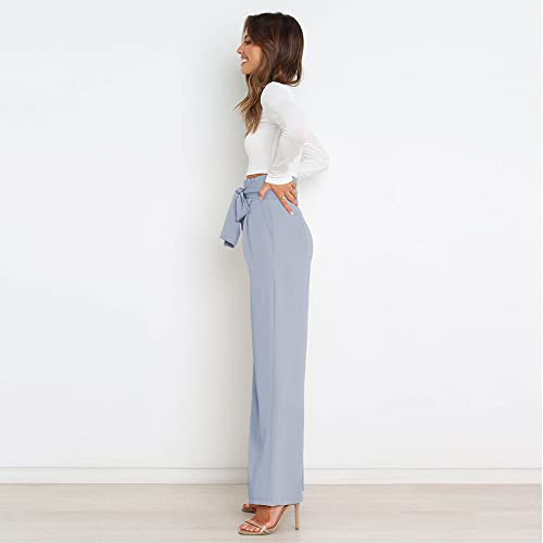 HOT ! Women's Casual High Waist Belted Wide Leg Pants with Pocket Bow-Knot Self Tie Work Pants Long Palazzo Pants Trousers