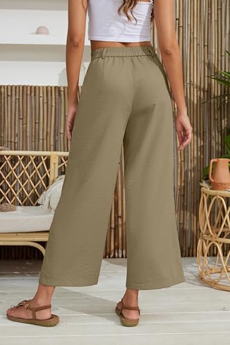 Linnet Pants for Women Elastic Waist Wide Leg Cropped Pants Trousers Loose Fit with Pockets 5