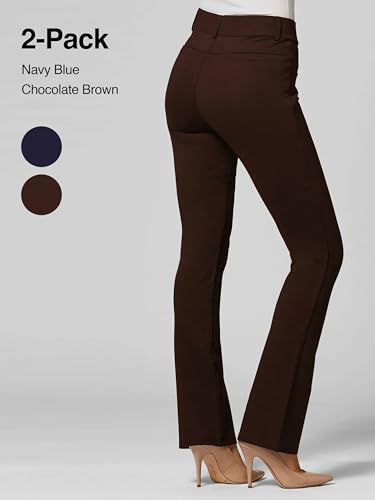 HOT ! Conceited 2-Pack Stretch Slacks for Women - Wear to Work - Bootcut Dress Pants with Pockets - Navy, Brown - (X-Large)