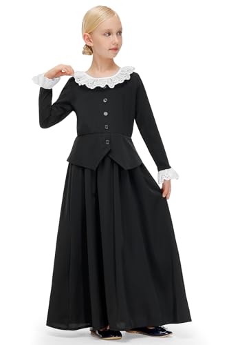 • Designed with a nod to colonial-era fashion, this black maxi dress features a ruffled collar, button-up bodice, and long sleeves—bringing timeless elegance to your child’s Halloween wardrobe