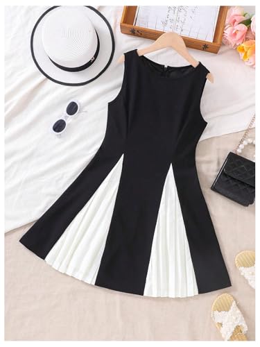 HOT ! Verdusa Girl's Colorblock Tank Pleated Dress Crew Neck Flared Summer Dresses