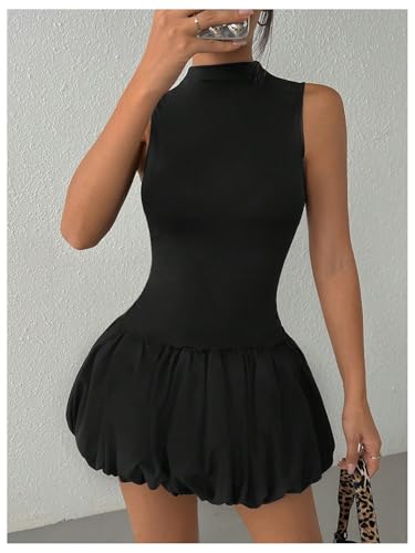 HOT ! MakeMeChic Girl's Mock Neck Bubble Dress Sleeveless Ruffle Y2K Tank Mini Dresses