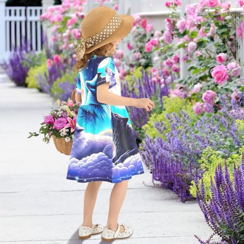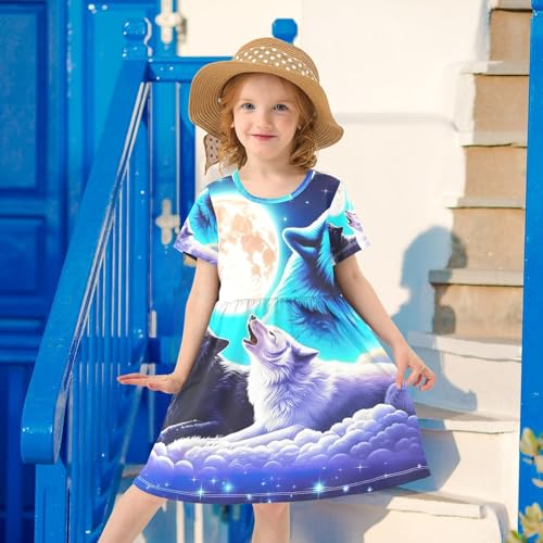 Galaxy Cool Wolf Blue Purple Girls Short Sleeve Dress Toddler Casual A Line Dress, 2T 4