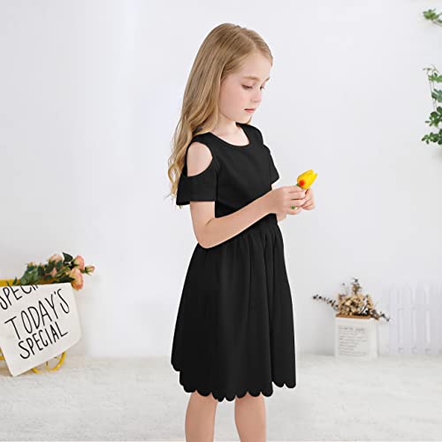 VASCHY Girls' Scallop-Detail Cutout-Sleeve A-Line Dress for Wedding/Birthday/Party Swing Twirly Summer Outfits Clothes Kids 7