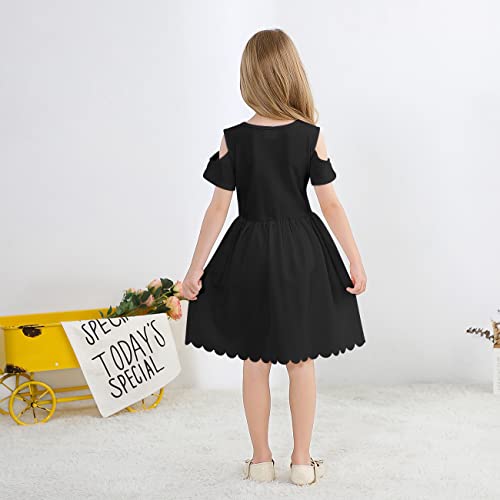 VASCHY Girls' Scallop-Detail Cutout-Sleeve A-Line Dress for Wedding/Birthday/Party Swing Twirly Summer Outfits Clothes Kids 5