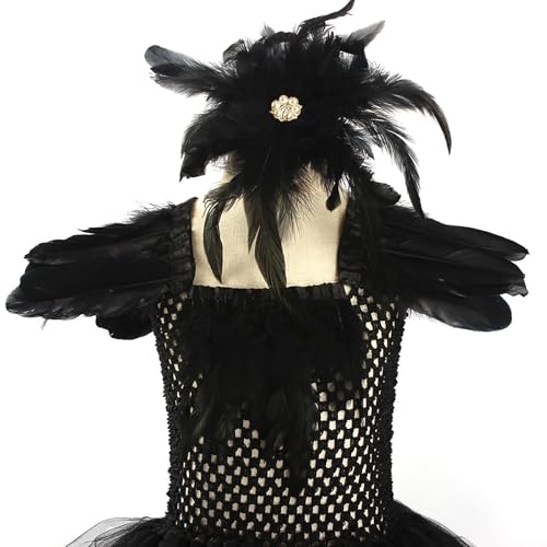 Kids Girls Black Swan Dress Outfits Tutu Ballet Skirt Dress with Wings Hair Clips Toddler Holiday Outfits Clothes 5