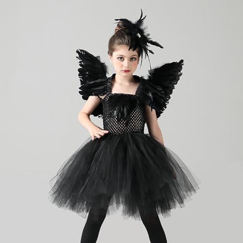 Kids Girls Black Swan Dress Outfits Tutu Ballet Skirt Dress with Wings Hair Clips Toddler Holiday Outfits Clothes 4