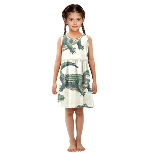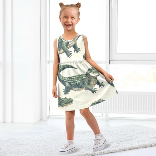 Girls Summer Dress Sleeveless Dress Alligator Pattern Print Design Girls Sundress 2-8 Years 1