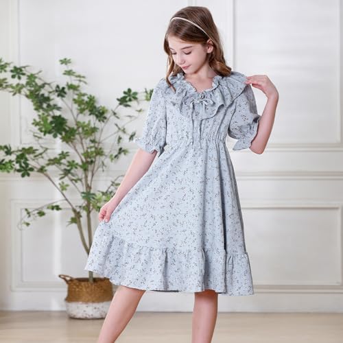 Zando Girls Floral Dress | Casual Ruffle Puff Sleeve Summer Dresses for Girls Kids Tween 5-14 Years 7