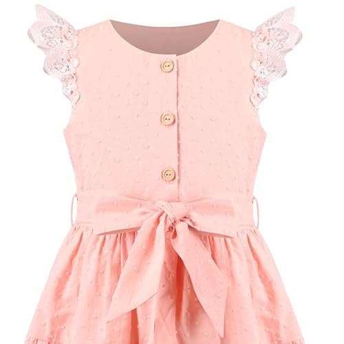 • The girls' dress is a solid coffee color with a linen texture design, made from cozy cotton. It features lace trim on the neck, cap sleeves, and bodice. This classic and formal style is suitable for daily wear, family gatherings, student events, and parties. Also appropriate for casual outings, church events, and birthday celebrations.