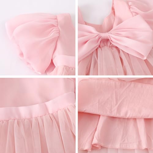 Toddler Girls Puff Sleeve Flower Girl Dress Tulle Backless Tutu Princess Party Dresses for Wedding Birthday 12M-8Y 4
