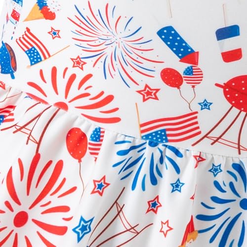 Toddler Girls Patriotic Summer Dress 4th of July Fireworks Print Independence Day Outfit 2