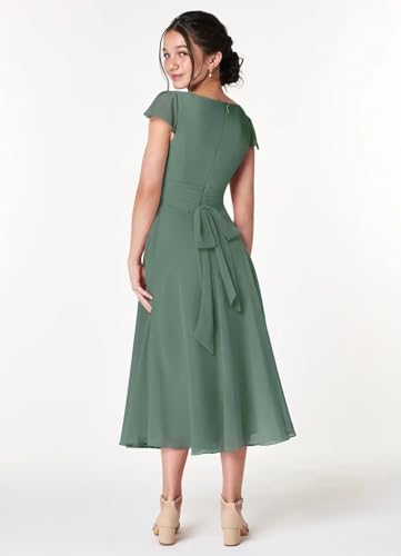 MCieloLuna Summer Short Sleeve Junior Bridesmaids Dresses for Wedding Boho Flowing Chiffon Formal Evening Midi Dress 4