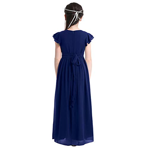 Choomomo Kids Chiffon Flutter Sleeves Zipper Back Wedding Flower Girls Dress Banquet Pageant Maxi Skirt 7