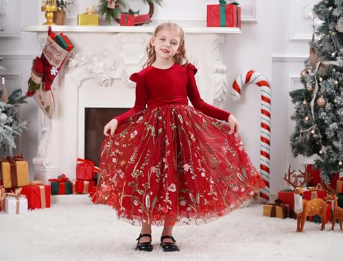 • Design: The fall winter long sleeve velvet floral embroidery ruffle tulle tutu dress, gives your a sweetie a fashionable and graceful feel in the daily life. Long sleeve round neck velvet top bodice, ruffled shoulders, puffy ruffle tulle skirt, looks super cute and elegant. Multi-layered ruffle tulle tutu skirt, totally 4 layers to make the full appearance, 1 layer tulle with embroidery, 2 layers soft tulle and 1 layer lining, adds more fullness.