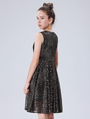 Mebius Girls Sequin Dress Sleeveless Sparkly Special Occasion Kids Party Sequence Sparkle Dress Birthday 8-14Y 4