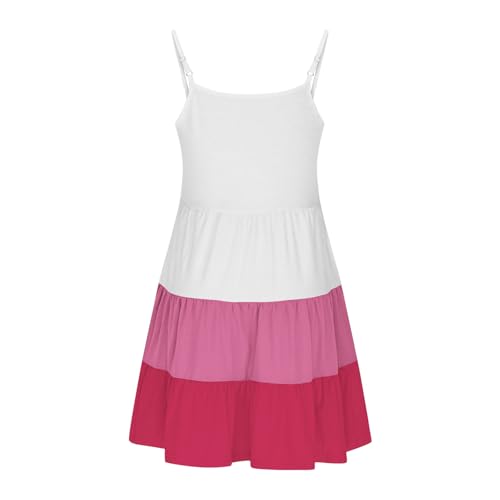 Girl's Summer Boho Dresses Fashion Color Block Spaghetti Strap Dresses Kids Sleeveless Vacation Tiered Flowy Dress 6