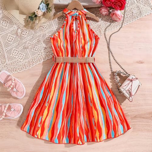 HOT ! Girls Halter Sleeveless Summer Dress Trendy Casual Printed A-Line Elegant Daily Dresses for 8-13 Years