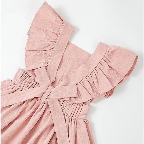 Toddler Girls Flutter Sleeve Pleated Dress Square Neck Solid Fancy Elegant Dresses Baby Kids Formal Dance Clothes 6