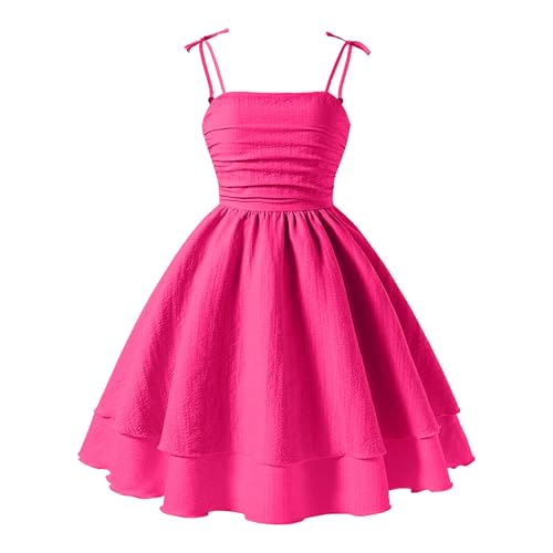 HOT ! Girls Summer Gauze Dresses Spaghetti Strap Double Layer Ruffle Sundress Sleeveless Casual A Line Swing Dress
