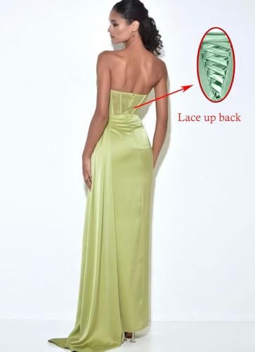 • Feature: Strapless Prom Dress, Long Mermaid Prom Ball Gown with Slit, Pleated Formal Evening Dress with Train, Cowl Neck Satin Bridesmaid Dress,Bodycon Cocktail Party Gown, high waist,Bulit in bra,Lace Up