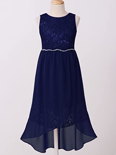 Kids Chiffon Flower Girl Dress Halter Sleeveless Sequins Wedding Formal Pageant Dance High Low Gown 6
