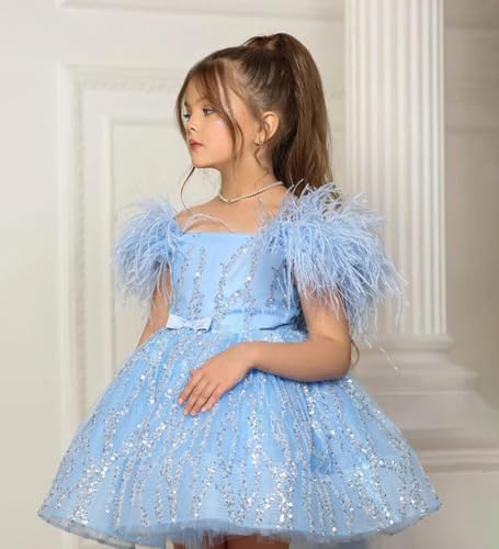 Short Mini Sequin Flower Girls Dresses Feather Birthday Party Princess Pageant Gowns 5