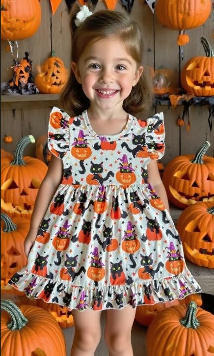 Halloween/Thanksgiving Toddler Girls Dress Pumpkin Dresses Flutter Sleeve Dress 6