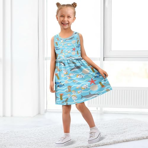 Girls Dress Sea Animals Starfish Shark Sleeveless Dress Summer Cotton Sundress 6Y 2