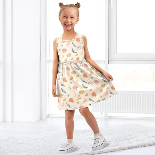 Girls and Toddlers'Sleeveless Cartoon Retro Ocean Seashell Summer Casual Dresses for Home Party Beach 2-8 Years 5