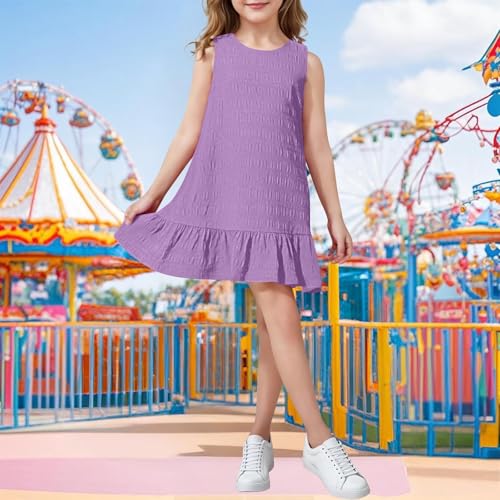 Girl Dresses Ruffle Hem Sleeveless Tank Dress Casual Crewneck Dresses Summer Beach Sundress Vacation Boho Mini Dress 5