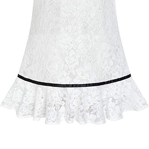 Sunny Fashion Girls Dress Lace Wave Hem Off White Elegant 3/4 Sleeve Size 5-10 5