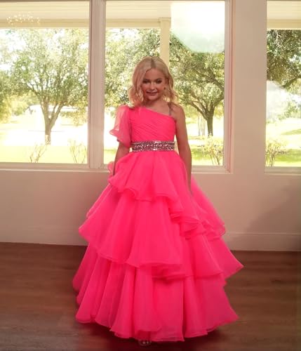 One Shoulder Girls Pageant Dress Long Crystals Organza Princess Party Ball Gowns Teen Formal Dress PT150 1