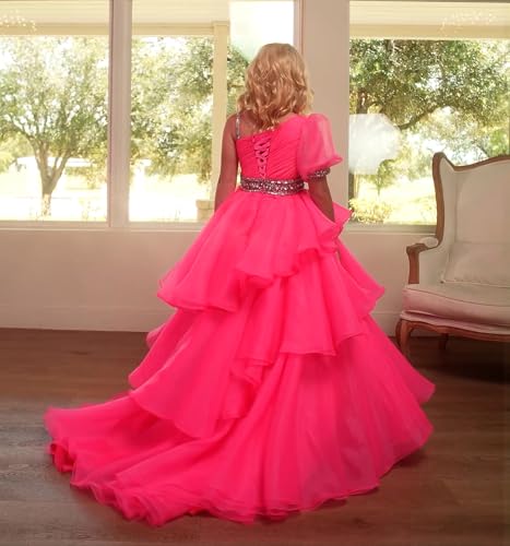 • ♪ Features: one shoulder girls pageant dress princess party dress crystals organza prom puffy ball gowns with train formal dress