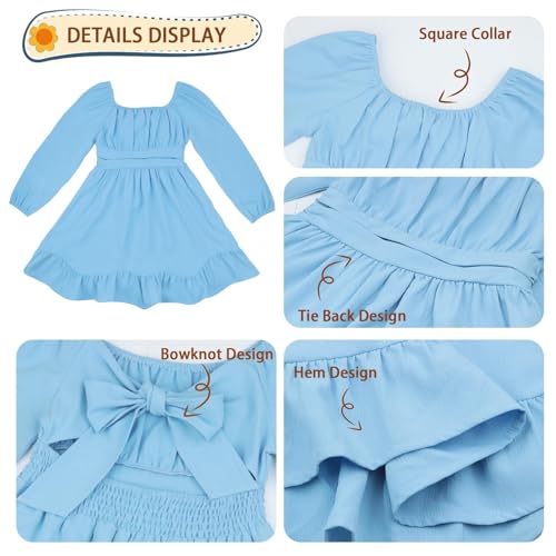• Material of Girls Dress: This square collar blue casual dress is made of Soft & Anti-wrink & Skin-friendly 100% polyester material with durable stitching.