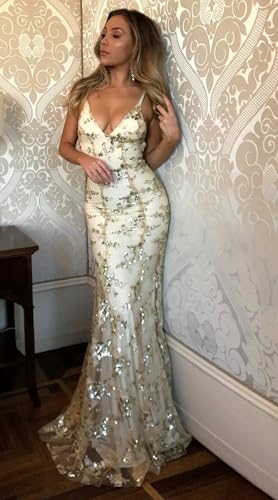 • Feature:Sequin,Mermaid , Spaghetti Strap, V Neck ,Sparkly,Bodycon ,Criss Cross Back,Floor Length, Silhouette,Built-in bra,Lace Appliques Prom dresses,Wedding Guest Dress,Evening Party Gown , Formal Maxi Dress. You will receive many compliments on this sequin dress.