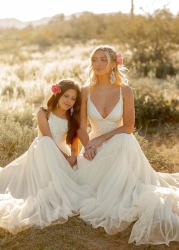 More information about SIPUHK Boho Flower Girl Dresses for Wedding Lace Princess Pageant Dress with Train Chiffon Frist Communion Dresses for Teens