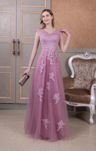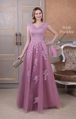 • Design Features: This tulle lace appliques mother of the bride dresses a-line v-neck formal evening dresses with pockets,use soft lace appliques tulle fabric,with lace up back,can be customized as mother of the bride dress,mother of the groom dresses,formal gown for women plus size,wedding reception,wedding guests dresses,A-line lace applique wedding party dresses,tulle mother dresses,formal dinner gowns.The floor-length design is suitable for pairing with heels to highlight your tall figure.