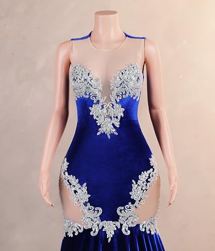 Velvet Prom Dress Beaded Applique Sleeveless Pageant Gala Mermaid Evening Party Gown 6