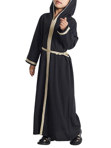 WSPLYSPJY Kids Girls Hooded Abaya Dress Embroidered Muslim Prayer Clothes Dubai Robe with Belt 6